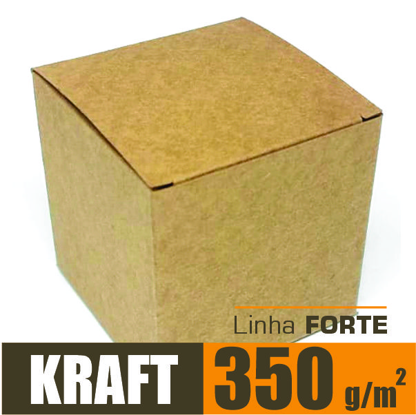 Caixinha fabricada com papel kraft natural, composto 100% por fibras virgens de pínus e eucalipto com gramatura de 350g/m2, certificação NFC, 100% reciclável e biodegradável.