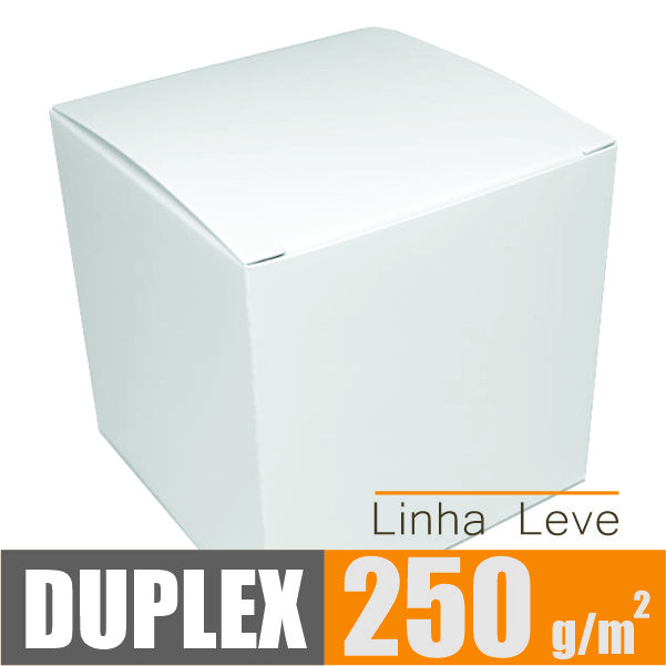 Caixinha fabricada com papel cartão duplex branco, composto 85% por fibras virgens e 15% por fibras de papel reciclado com gramatura de 250g/m2, 100% reciclável e biodegradável.