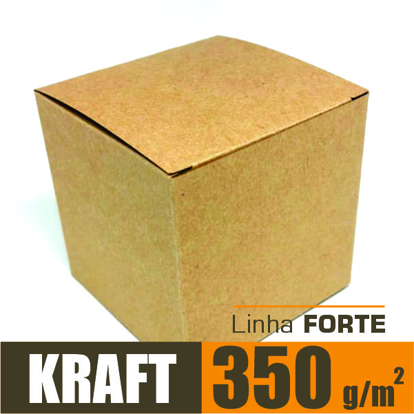 Caixinha fabricada com papel kraft natural, composto 100% por fibras virgens de pínus e eucalipto com gramatura de 350g/m2, certificação NFC, 100% reciclável e biodegradável.